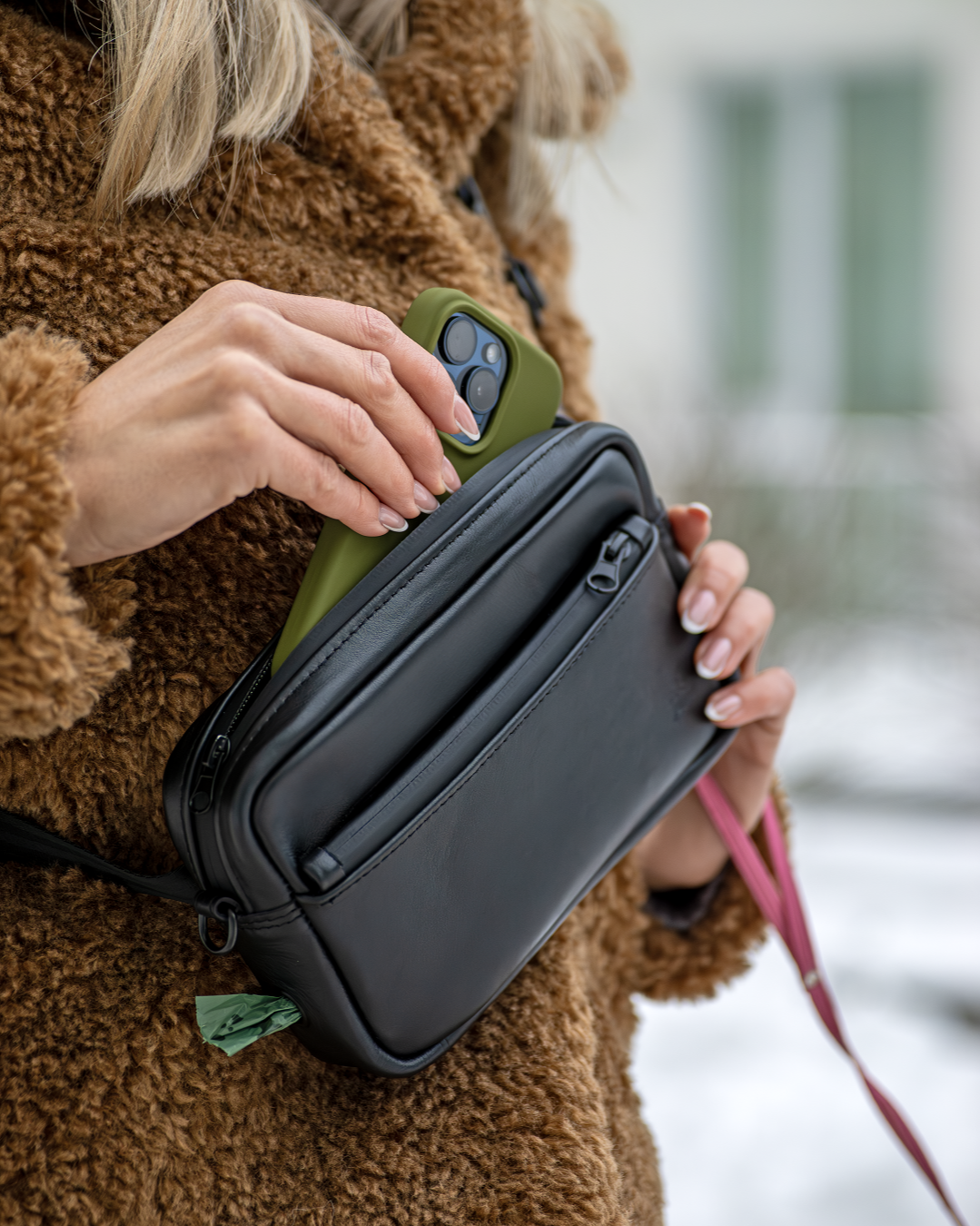 Somai ir trīs kabatas, kas ļauj ērti izvietot suņa gardumus, telefonu, atslēgas un citus nepieciešamos priekšmetus. Iekšējā apdare izgatavota no viegli kopjama materiāla, kas piemērots ikdienas lietošanai.